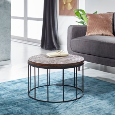 We are proud to offer over 300+ unique living room accent tables; The round coffee table is reserved for those carving out a cool, eclectic aesthetic. Hand carved coffee table recycled wood rustic hand crafted one of a kind. Wethered wood round coffee table with metal legs, decorative round end table, carved accent side table for entryway living room, country style furniture, 23.625 dia. Coffee tables are a key component of any living space, offering a place to set drinks and snacks or display decor.